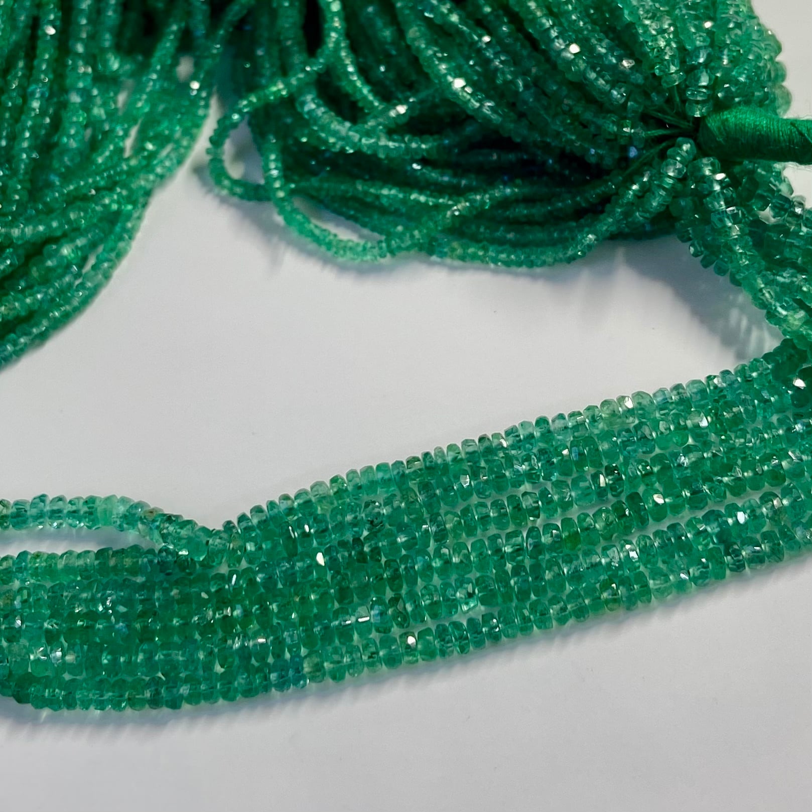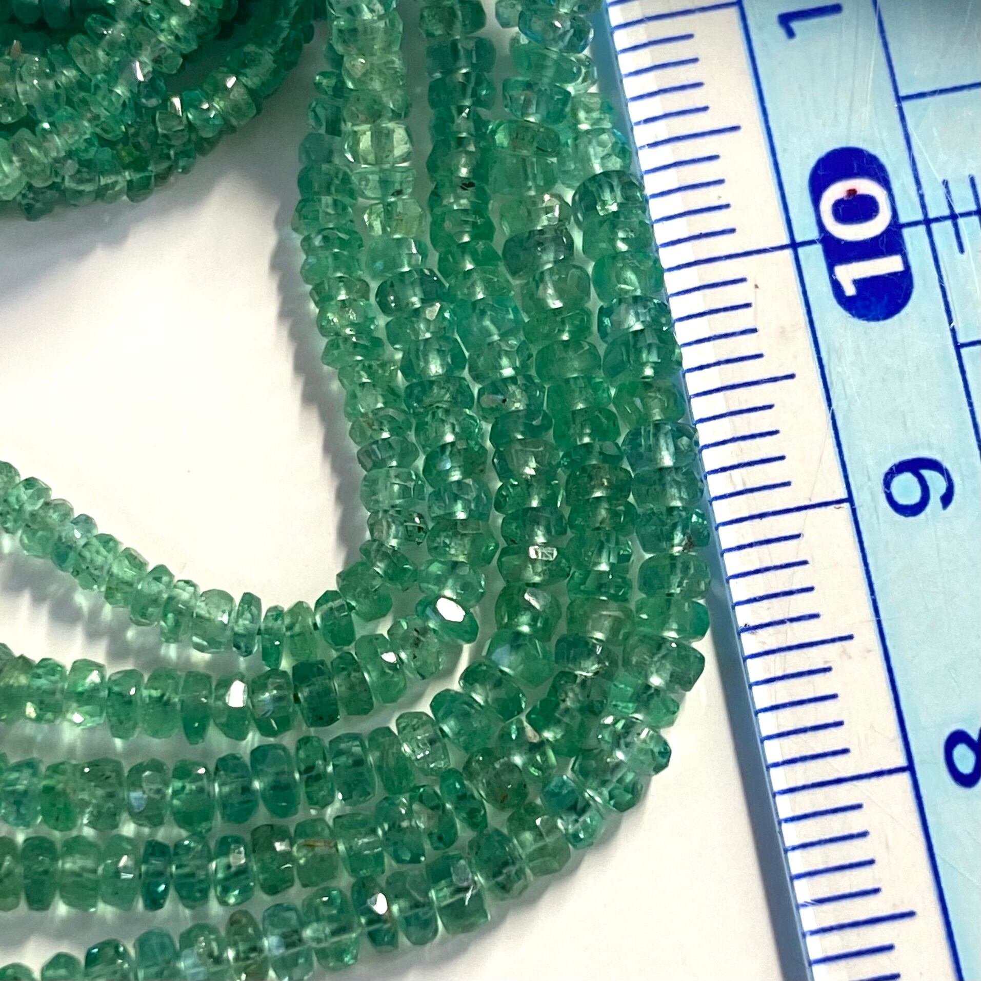 黒点や、内包物のすくない綺麗なエメラルドビーズです。